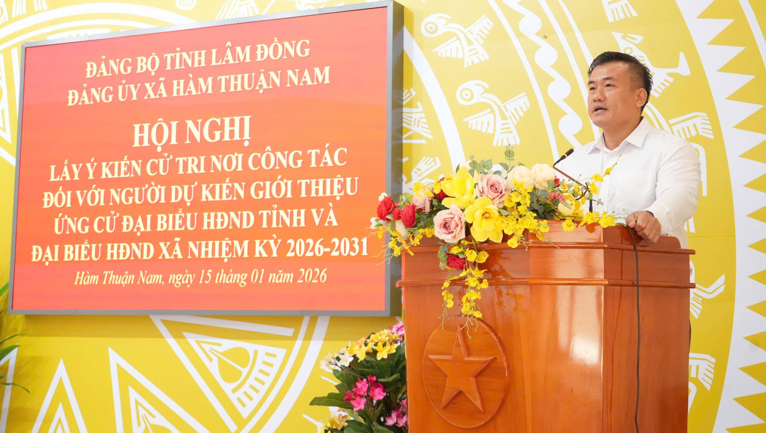 Thường trực Đảng ủy xã Hàm Thuận Nam tổ chức Hội nghị lấy ý kiến cử tri nơi công tác đối với người dự kiến giới thiệu ứng cử đại biểu HĐND tỉnh và đại biểu HĐND xã, nhiệm kỳ 2026-2031